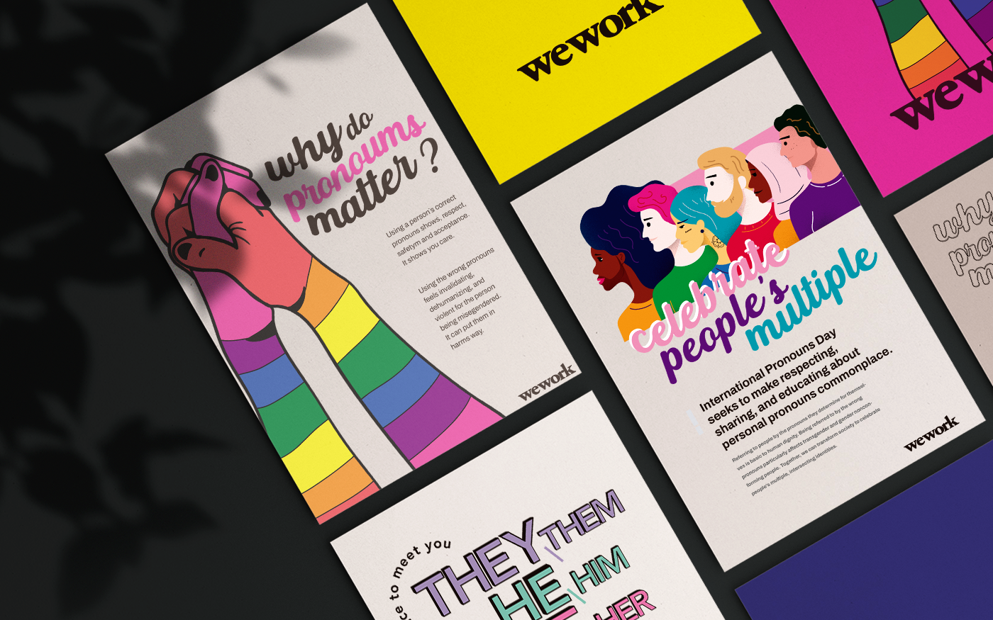 These posters were made for the Marine Drive (Vancouver) WeWork branch, as volunteer work to celebrate Pronouns Day.